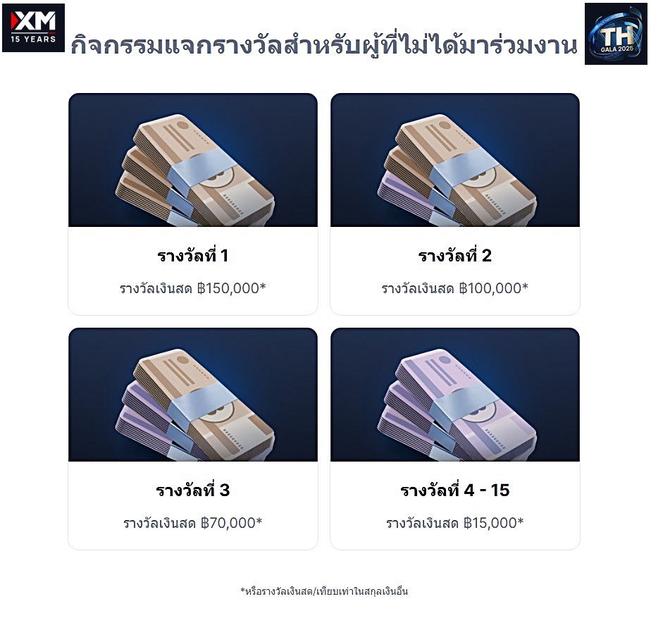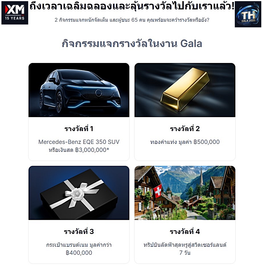 » กิจกรรมแจกรางวัลที่งาน Gala  จะจัดขึ้นภายในงาน XM Gala Dinner 2025 ในวันที่  1 พฤศจิกายน โดยเราจะประกาศรายชื่อผู้ชนะภายในงานทันที
