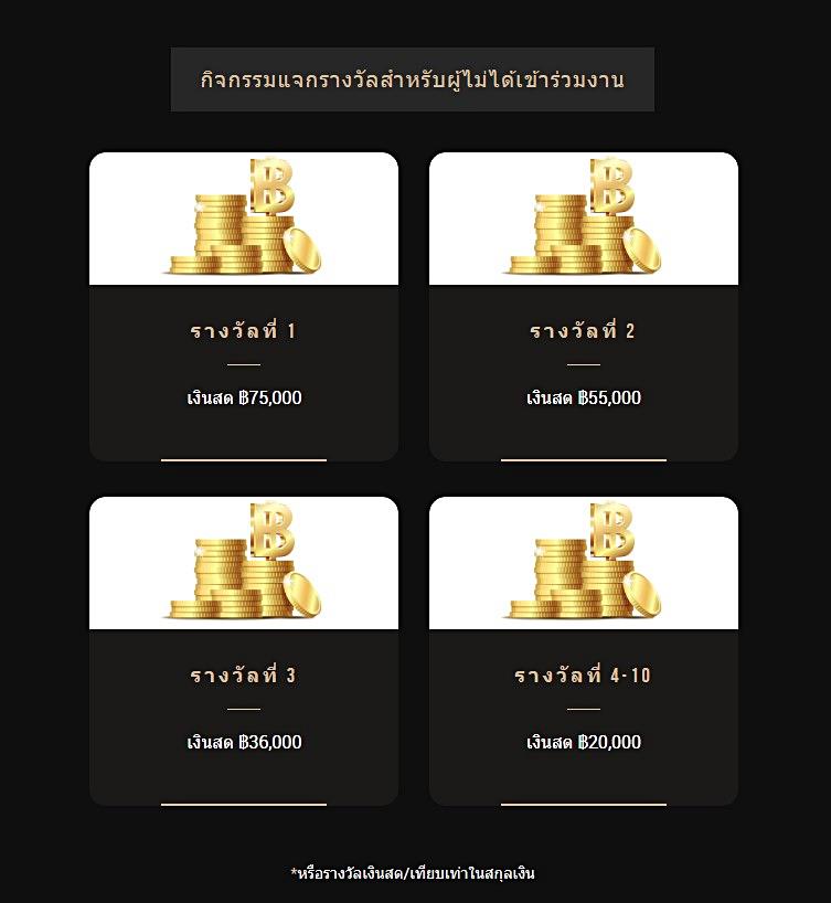 กิจกรรมแจกรางวัลสำหรับผู้ไม่ได้เข้าร่วมงานจะมีผู้โชคดี 10 ท่าน และกิจกรรมแจกรางวัลในงานกาล่าจะมีผู้โชคดี 20 ท่าน