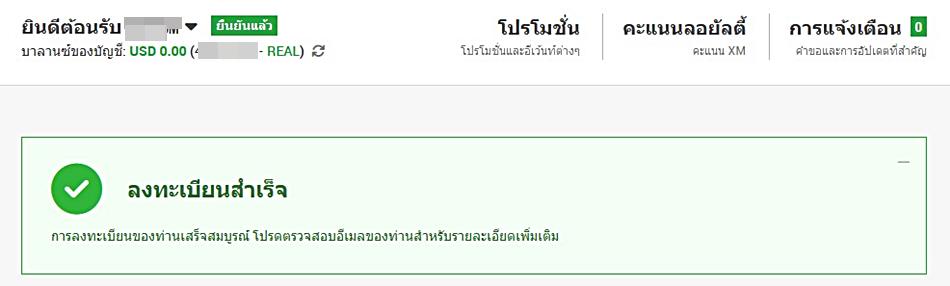 3. เมื่อลงทะเบียนสำเร็จ จะขึ้นข้อความเหมือนภาพด้านล่าง จากนั้นทำการฝากเงินเข้าบัญชีเพื่อเทรด ขั้นต่ำ $300